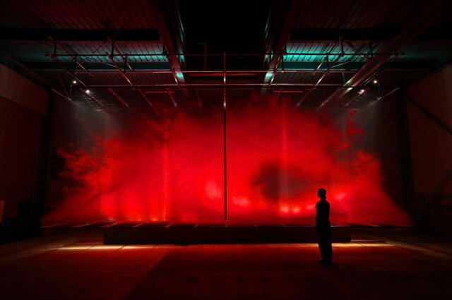 The piece is composed of 90 sheets of transparent film, painstaking hung side by side and, like layers, back to front.