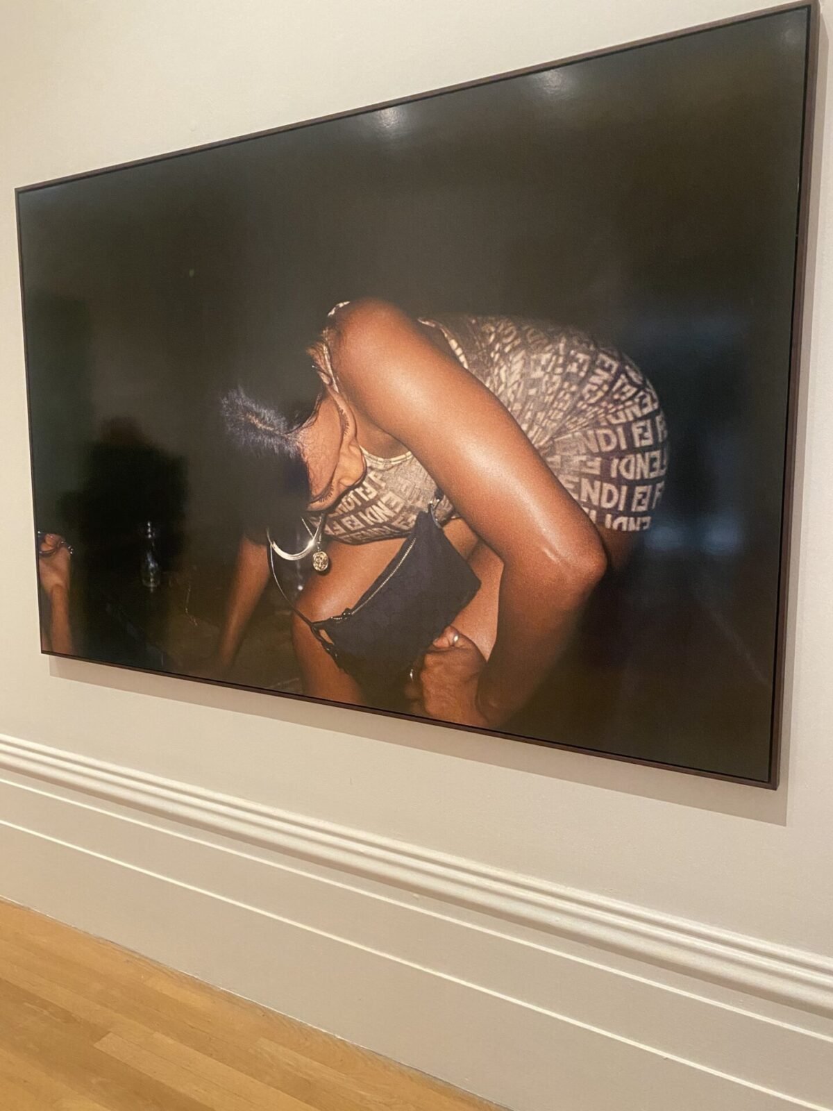 Another standout piece is “Two Faced Boot” by Joy Yamusangie, combining acrylic paint and oil bars on canvas. The painting is part of a series made by the artist following their gender confirmation surgery.
