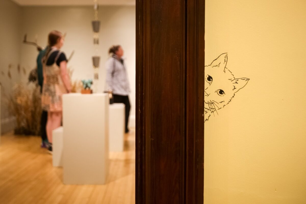 “I think the Children’s Gallery generally has been a pretty good success for us and people are loving the cats. It’s fairly successful exhibit as far as interaction and getting people up here and getting kids involved,” Rutter said. “It’s fun to see how much adults actually engage with the children’s space. During the occasional walkthroughs I’ll catch very tall adult men and women sitting in these little chairs drawing on the tabletop there. I think people enjoy the whimsy of the space.”