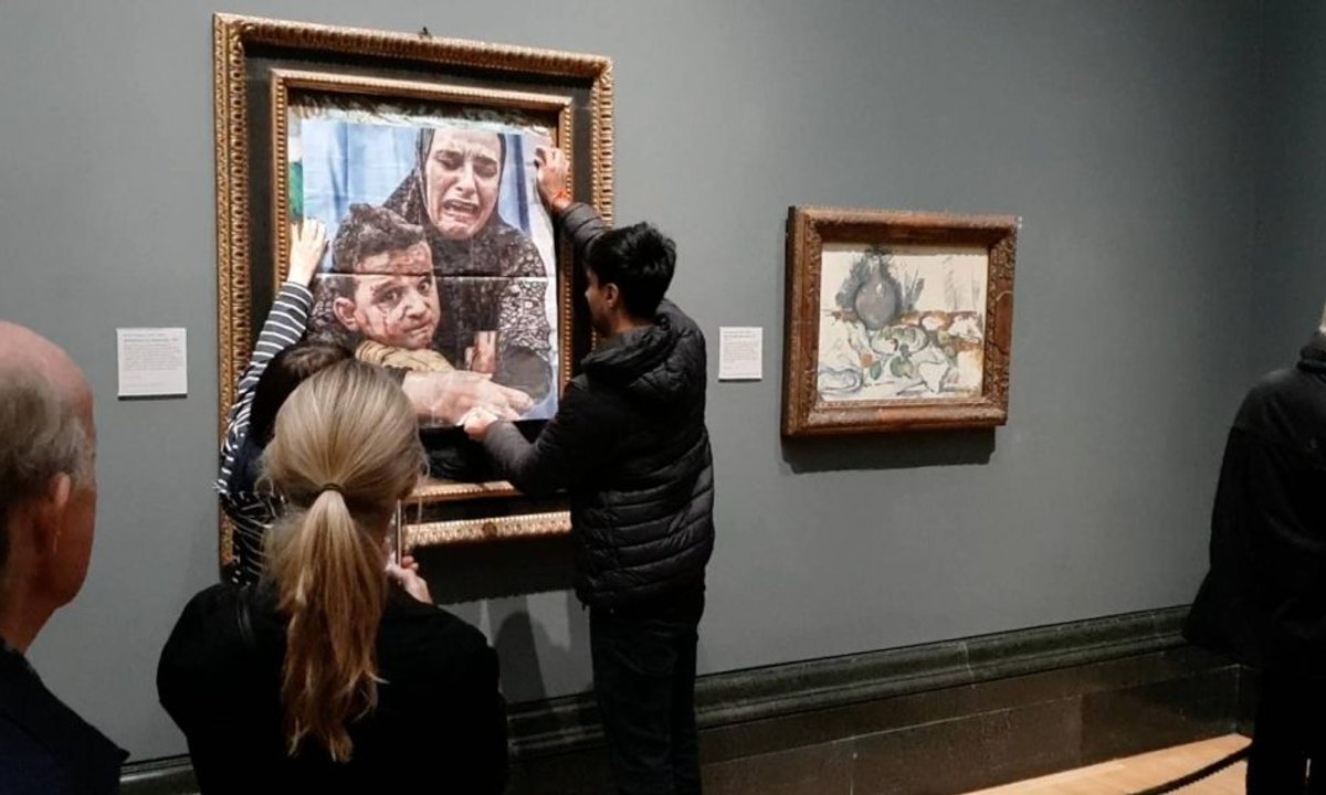 Two people have been arrested after a painting by Pablo Picasso hanging in the National Gallery, London, was briefly covered by protestors with a photograph of a Gazan mother and child. The incident took place shortly before 12pm on 9 October, when two supporters of the campaign group Youth Demand entered room 43 at the gallery and placed the image over Picasso’s Motherhood (La Maternité) (1901).