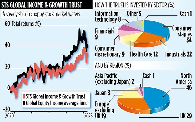 Over the past six months the trust has recorded a gain of 5 per cent compared with the 3.2 per cent loss by the average for its peer group. At other times when markets have declined – for example, at the start of the Ukraine war in 2022 and later in the same year when interest rates rose suddenly – it has proved equally resilient.