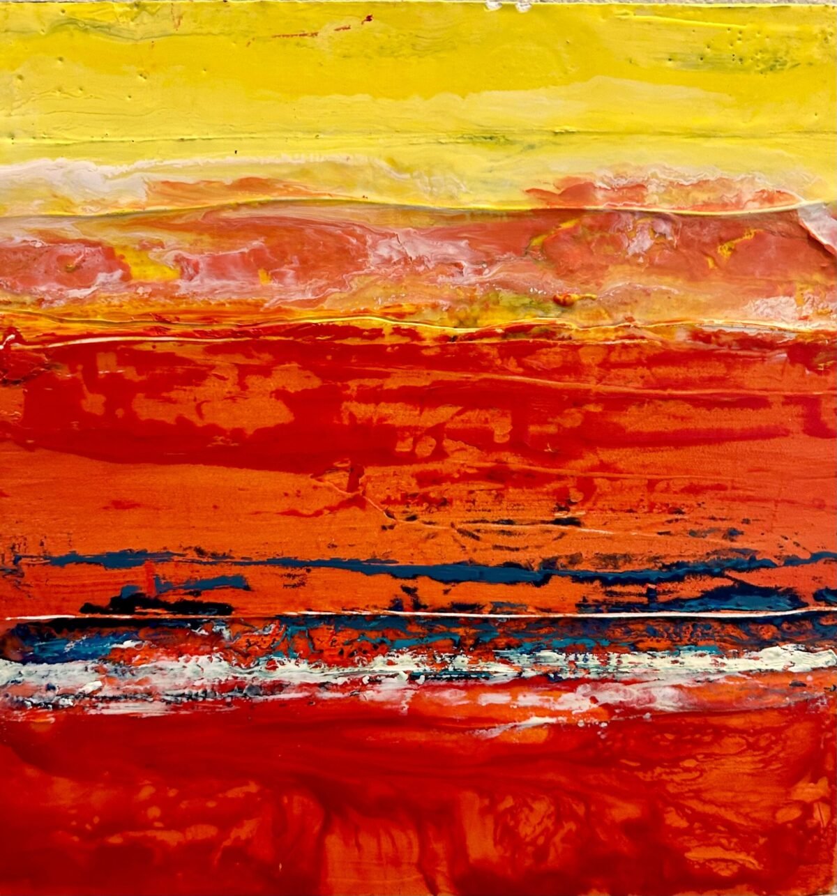 “Summer Heat”, a juried exhibition resulting from an Open Call to artists, will continue through August 30th. This show features 22 Tampa Bay artists whose diverse techniques make a up the collection. Some of the media used in the show includes cold wax, collage, pastel, screenprint, encaustic, photography, even “trash”. Traditional oil and acrylic paintings are included, as well.