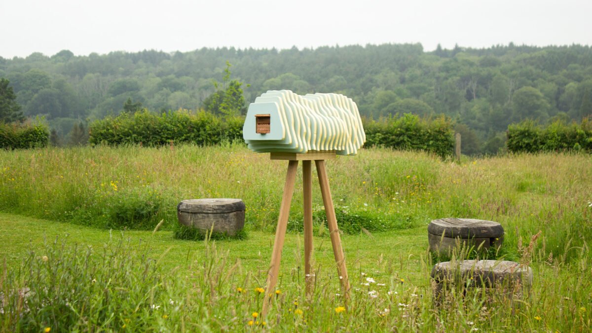 The design is inspired by Kew’s Millennium Seed Bank’s (MSB) collection (the world’s largest underground seed bank and conservation resource for diverse wild plant species). Pulejkova’s functional artworks are constructed from untreated marine ply and cedar, materials chosen for their environmental compatibility and natural antifungal and aromatic properties, are bee-friendly and allow the creatures safety from instances of extreme heat during British summers.
