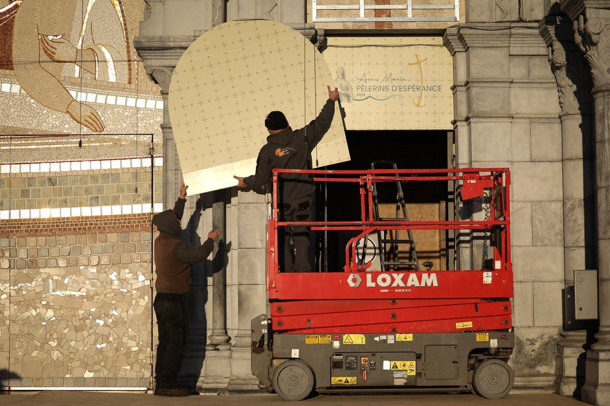 On Monday, workers placed large coverings over many of the mosaics, Lourdes Bishop Jean-Marc Micas said.