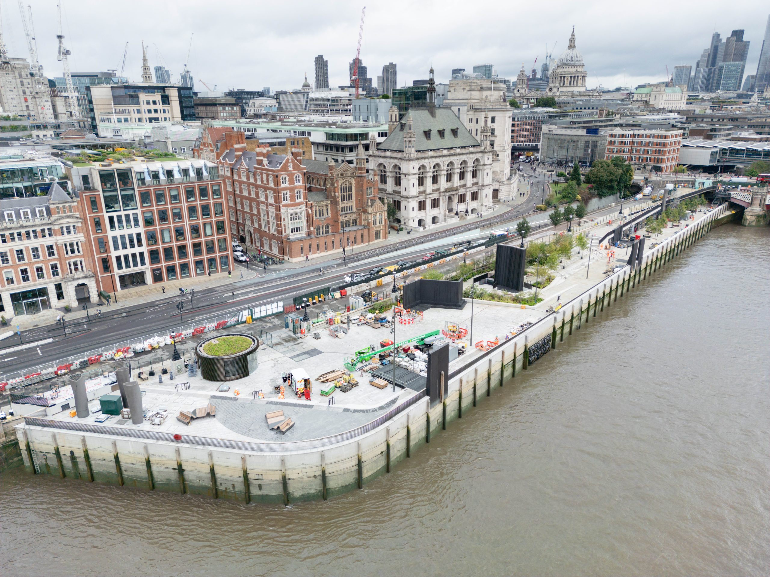 Located below and to the west of Blackfriars Bridge, this is a 5,000m2 110m-long space. It sits above two Combined Sewer Overflows connecting to the main tunnel, which intercept more than 500,000 tonnes of sewage annually. The site provides significant landscaping, including trees, shrubs, grasses and herbaceous plants and ferns and includes public toilets, commercial spaces and a kiosk.