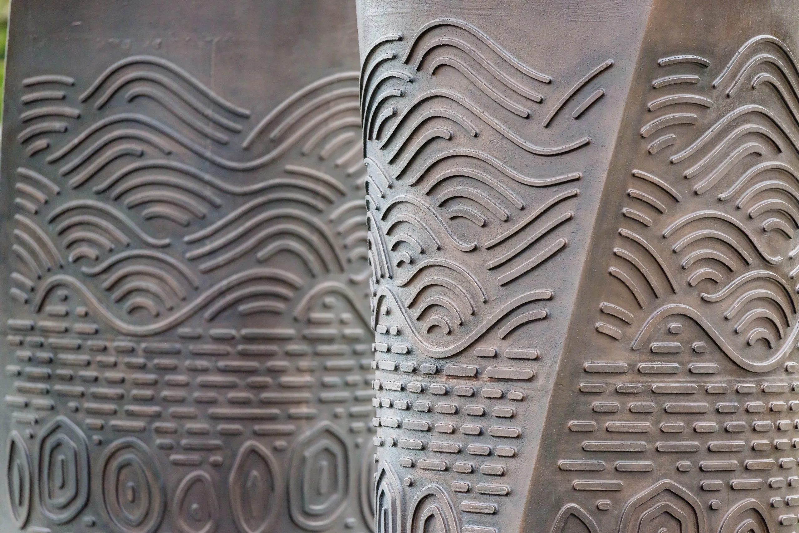 Detail of the engravings on the ventilation columns at King Edward Memorial Park, inspired by the water, foreshore and grilles on the nearby Rotunda building (photo: Danny Loo)