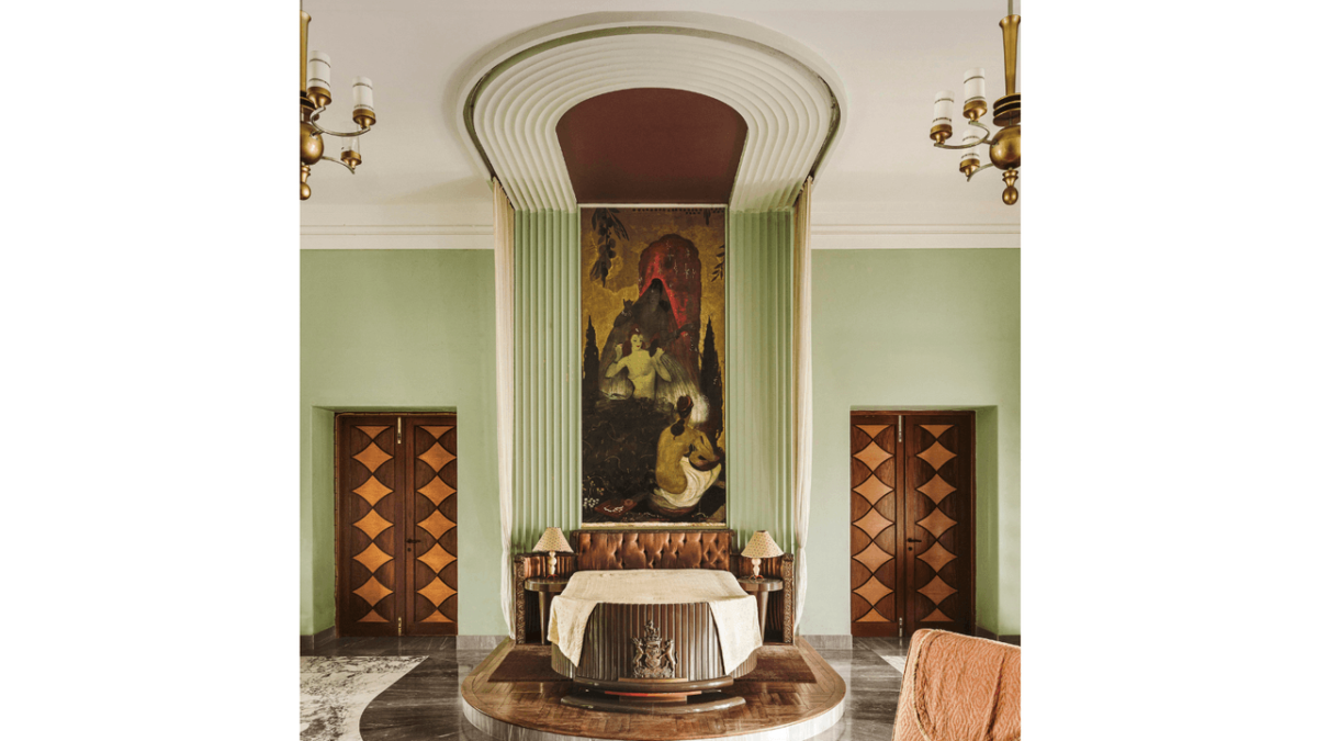 “The maharaja loved all things beautiful, be it homes, artefacts, art,” writes Mira Ba. “He was a good tennis and polo player. His absolute, true love was horses; he was an excellent rider, also a keen golfer and wanted to build a golf course in Morvi. He built an airport in Morvi and kept a small plane.” Relics of these hobbies live on at the palace. The walls are bedecked with trophies and medallions, oil canvases of horse riders and polo players, and larger-than-life portraits of ancestors, including his father, Lakhdhirji Bahadur, and grandfather, Waghji Bahadur, dressed in all their finery. Modernity and tradition are in play here, styled in the flourishes of art deco.