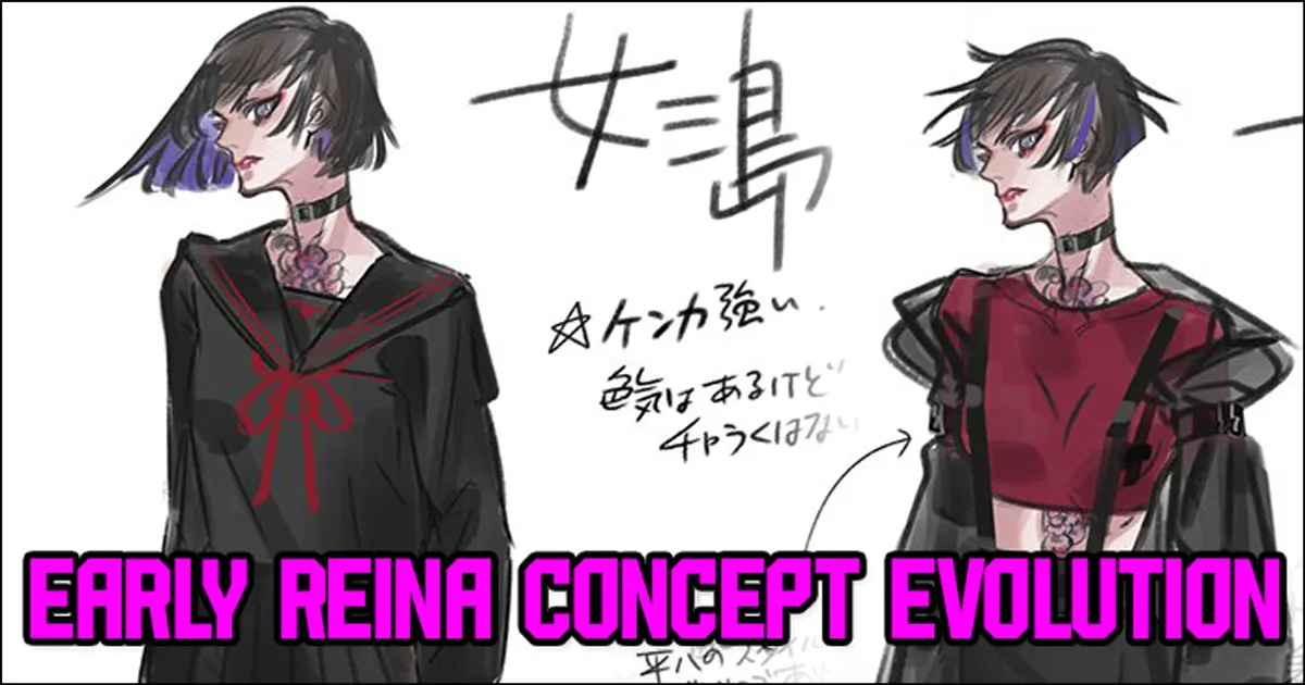 Perhaps the most interesting pieces come on the first page where Shimazaki reveals six of Reina’s first draft concept art that wasn’t used in the full game.