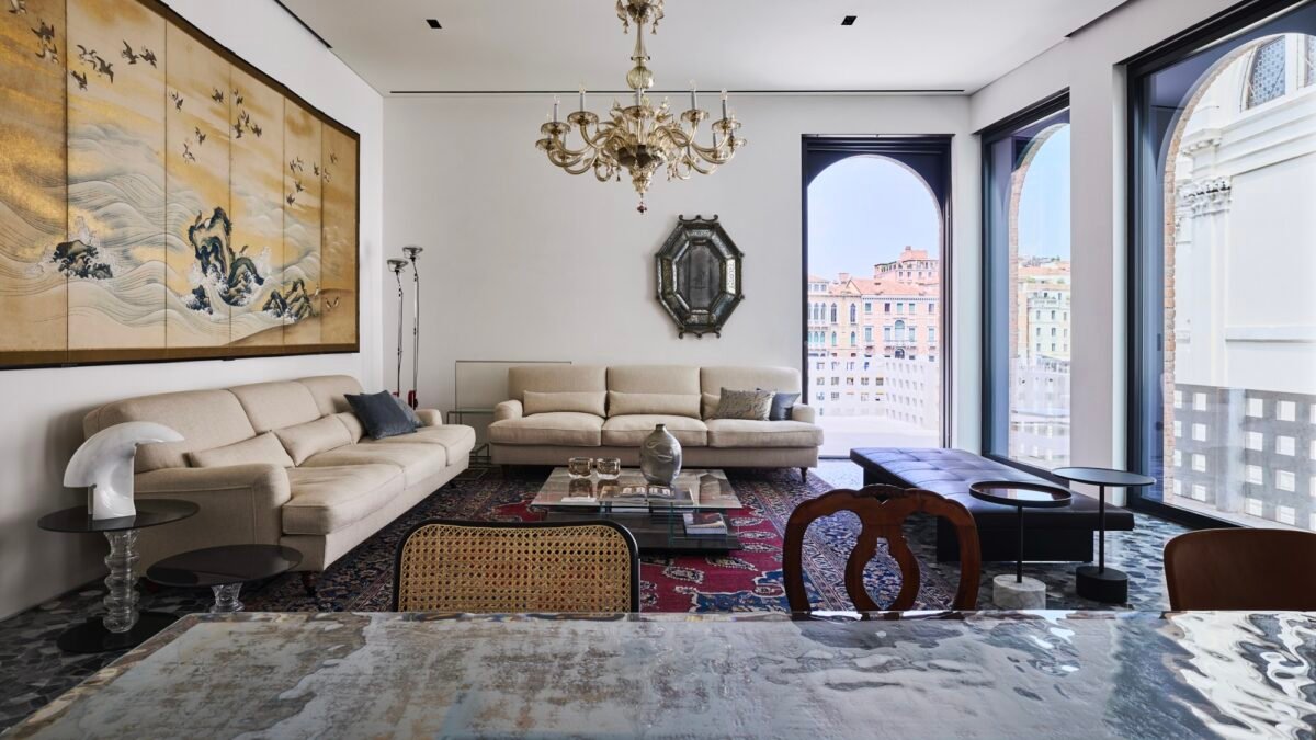 But the real showstopper lies inside: one of the project’s most innovative features is the glass staircase. Inspired by the building’s original geometry and reinterpreted with steel and, naturally, glass, it’s a striking centerpiece. ‘Everyone knows – I love staircases. I’m obsessed with them,’ Lissoni admits. ‘And in Venice, there had to be one in glass. A transparent, solid structure that doesn’t shake, doesn’t sway, doesn’t move – and above all, doesn’t slip.’