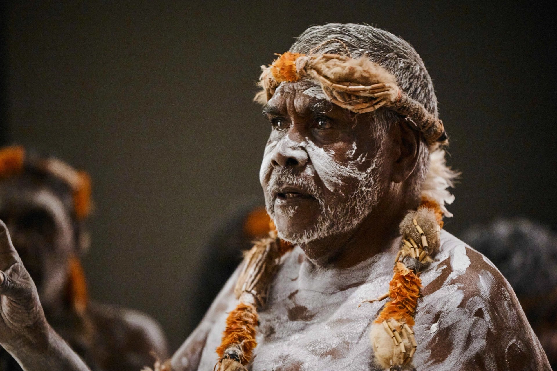 Numerous Yolŋu artists and community members from Yirrkala and surrounding homelands travelled 4000 km to Sydney for the opening weekend talks and workshops. The opening night featured a special performance by Yolŋu dancers led by Marawili.